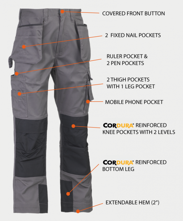 - Multi-pocket water-repellent trousers with fixed nail pockets