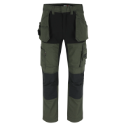 - Multi-pocket trousers with 2 fixed nail pockets and 4-way stretch parts at crotch and knees for extra freedom of movement