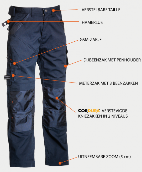 - Verstevigingsmateriaal: 100% polyamide dobby Cordura®